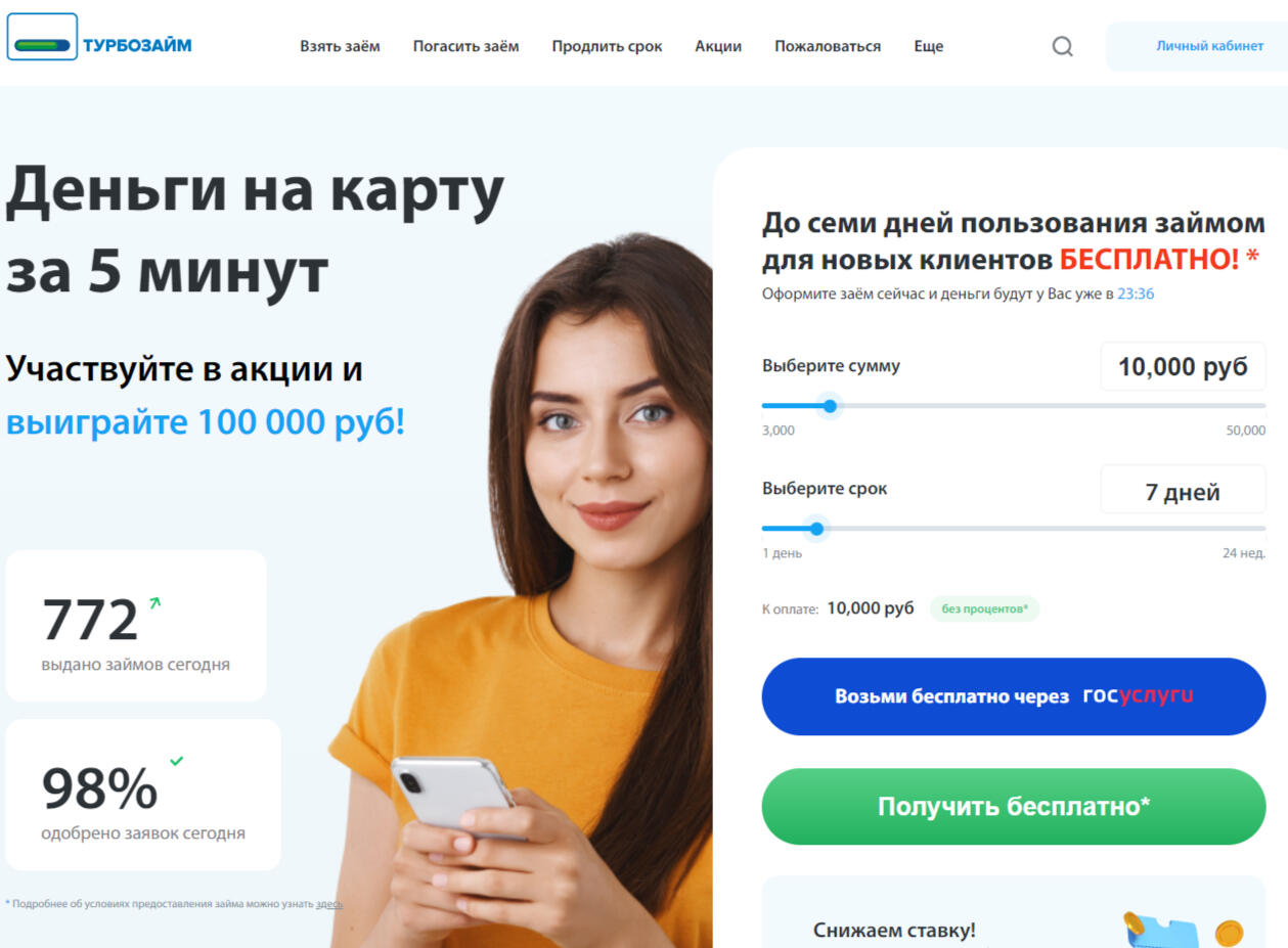 Первый займ бесплатно!